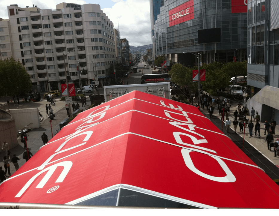 Como o evento é muito grande, é impossível que seja realizado em um único prédio. Por conta disso, a Oracle utilizou vários prédios simultaneamente no evento. Eles podem ser observados no mapa abaixo: