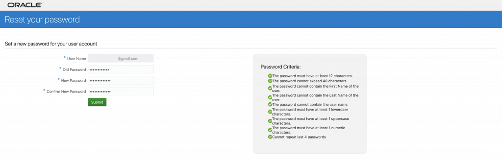 You should change your password to a new one attending the password criteria exhibited in the page: