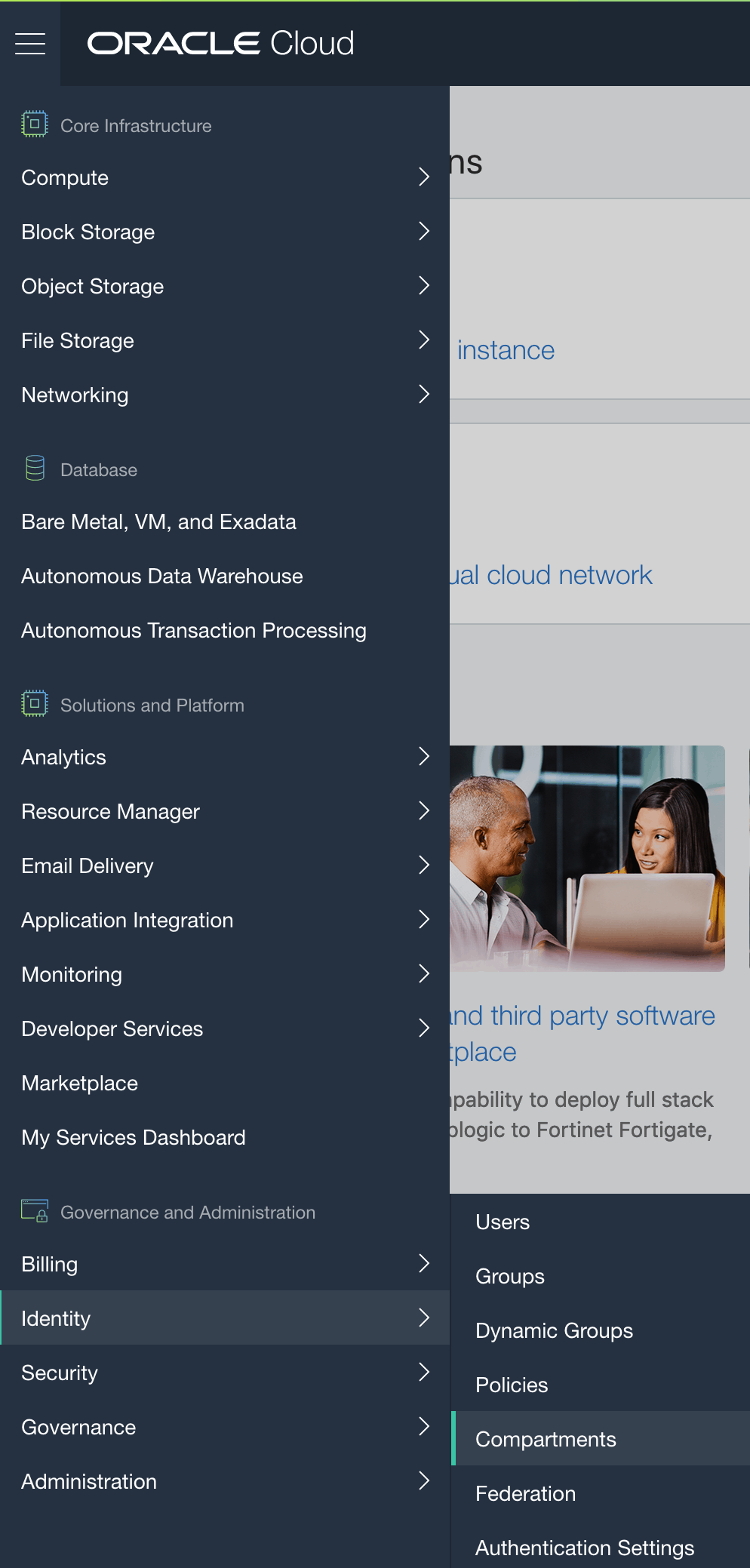 In the home screen, click in the hamburger button (top left corner), go to Identity and then Compartments: