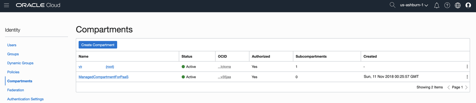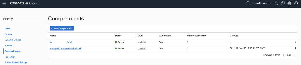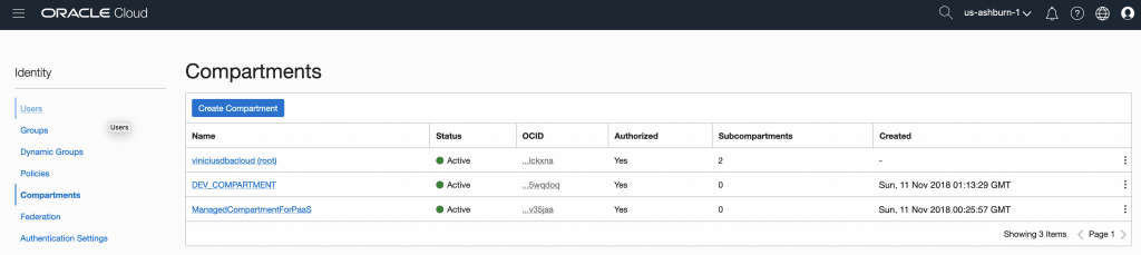 The screen for Compartments it will be exhibited. Click on [Create Compartment] button: