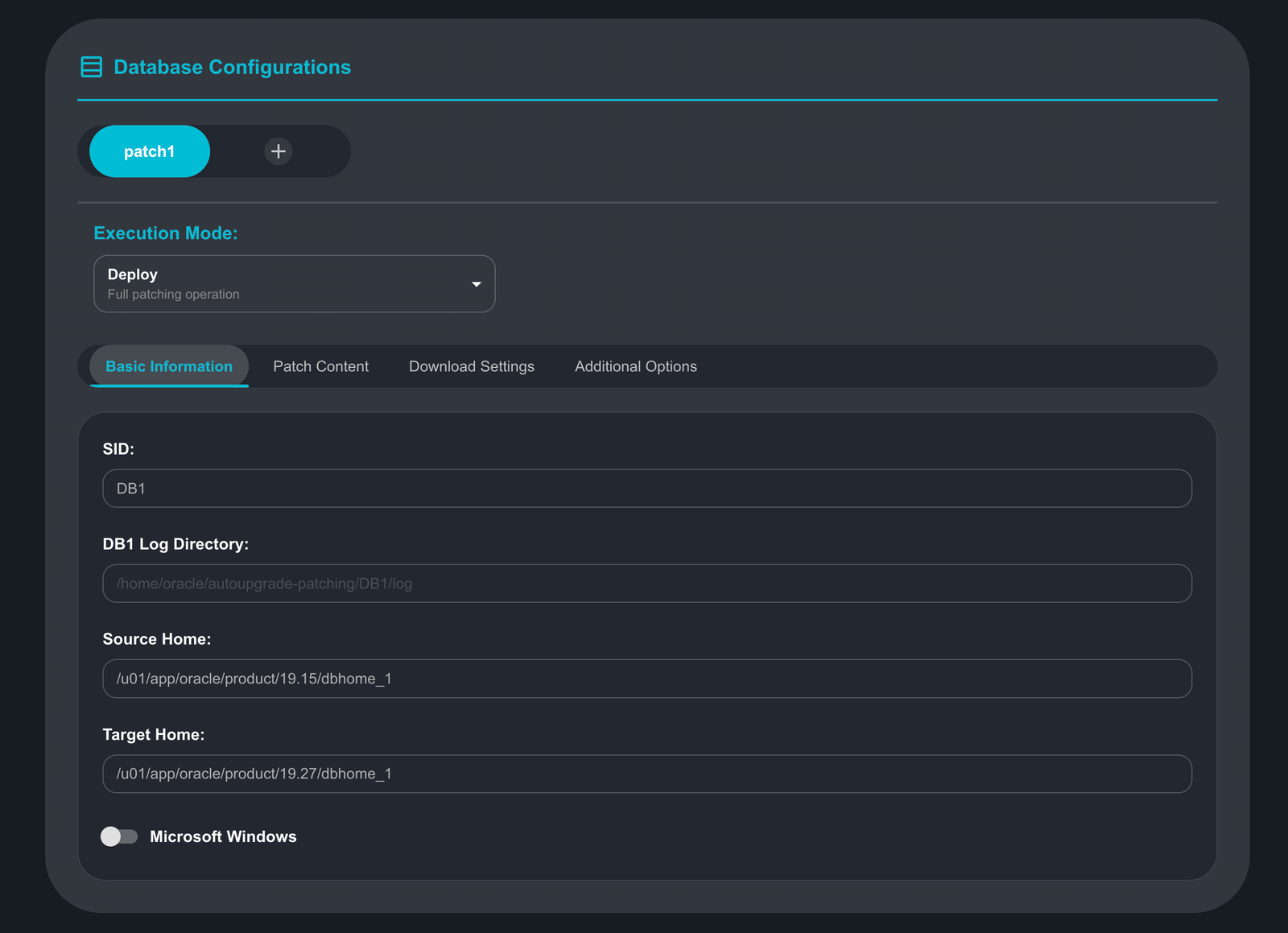 In the screenshot below, we have the Database Configurations for Patch operations: