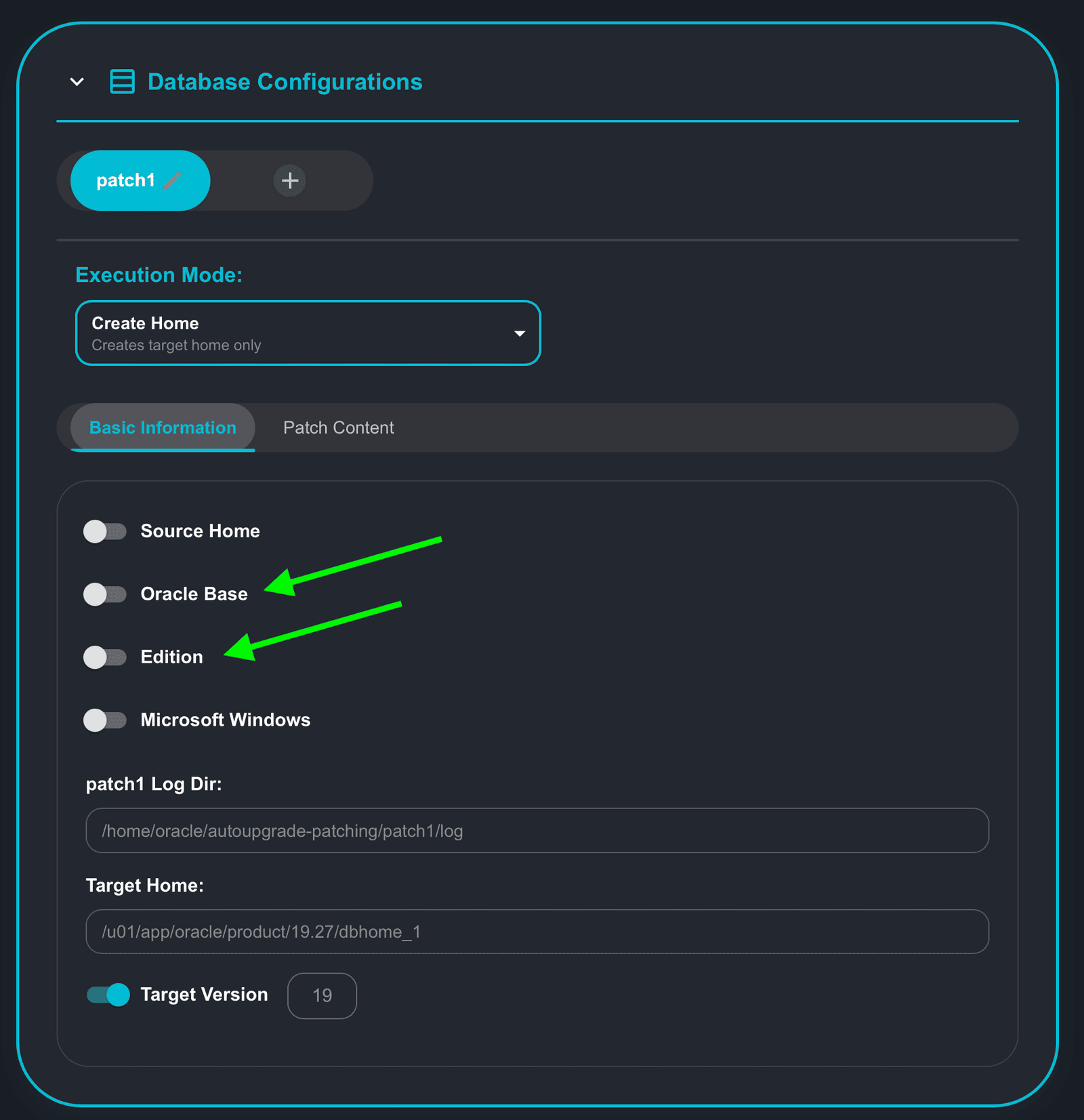 - Source_Home: if you select this option, AutoUpgrade will use the ORACLE_BASE and EDITION for the selected Source Home to create the new home.