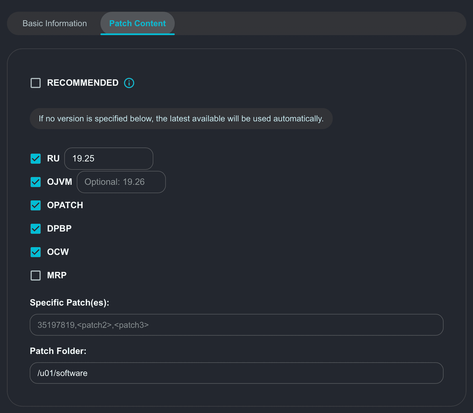 - Target Version: if you select this option, AutoUpgrade will download the latest patches available for major version 19 (19c), which is the only valid parameter for Target_Version as of now (June/2025).