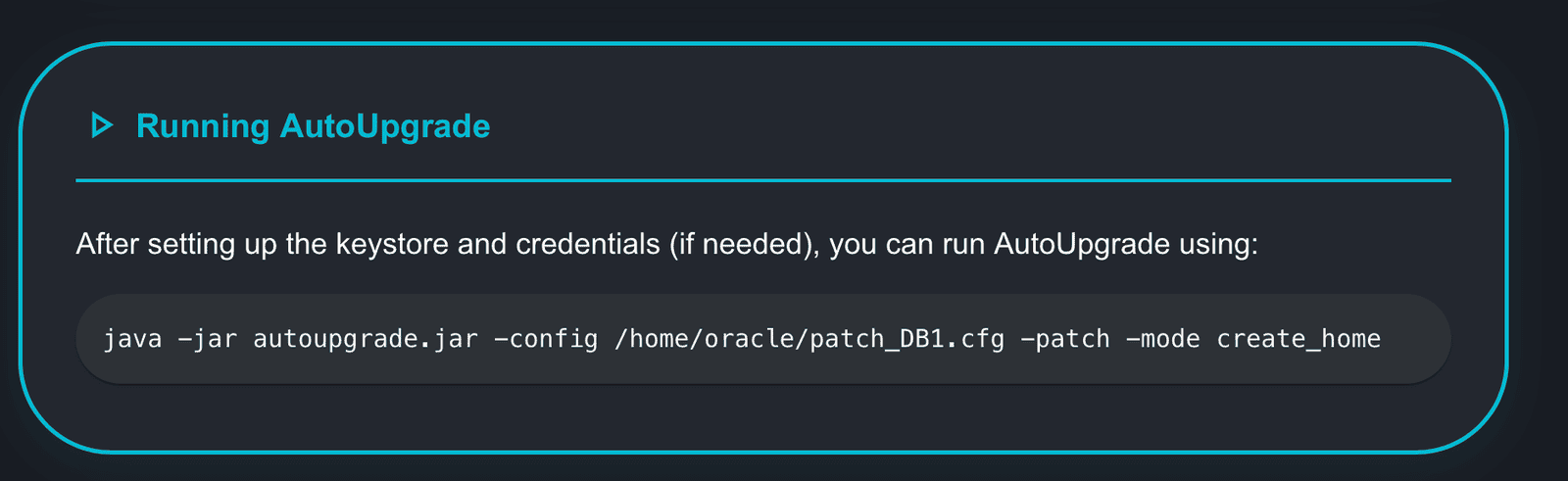 Continuing with the scroll, you have the instructions on how to run AutoUpgrade in Create Home mode: