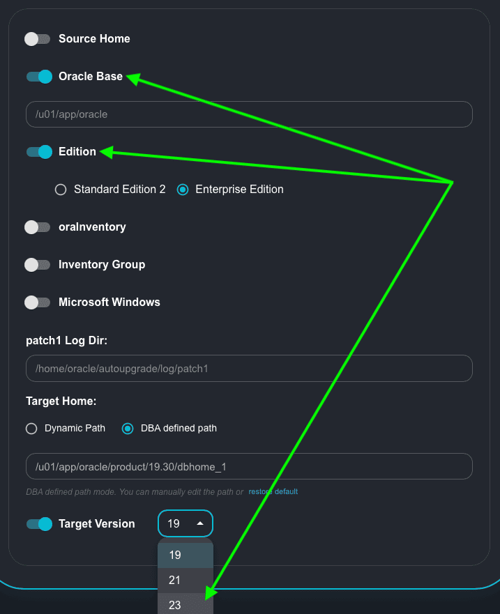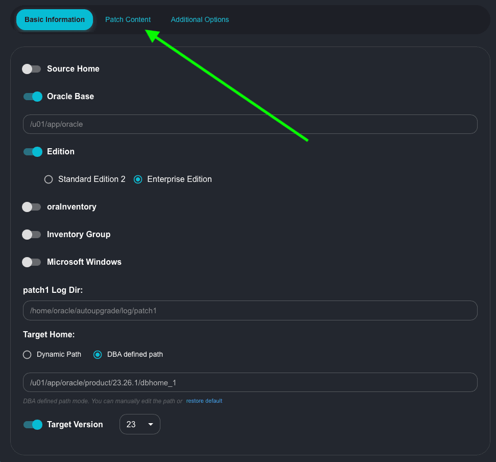 • Target Version: I will change it to 23 – as our goal is to install the Oracle Home for 26ai (23.26).