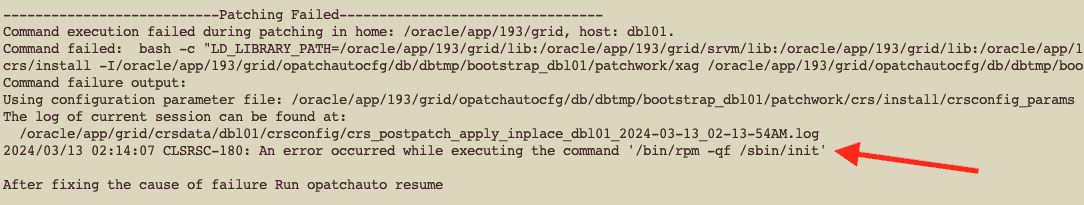 Grid Infrastructure RU opatchauto failing with CLSD/ADR initialization failed with return value -1